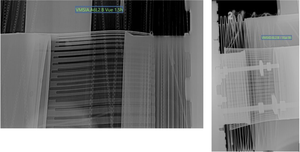 During the orbit excursions, beam losses were also recorded. These were traced to a sudden and brief rise in vacuum pressure of about a hundredfold near Point 2 but on the side towards Point 1. After the spike, the pressure gradually decreased again. Similar vacuum activity was observed in subsequent fills, prompting the vacuum experts to request access in order to take X-ray images of the affected part of the LHC machine. The X-ray scans revealed a problem in a radiofrequency (RF) finger module, a component that ensures electrical continuity at the join between two vacuum chambers. The images showed that the spring, which should press the fingers tightly against the chamber wall, had lost its tension and no longer provided reliable contact. Without this contact, electrical sparks can occur as the beam passes, which in turn trigger the sudden spikes in vacuum pressure.